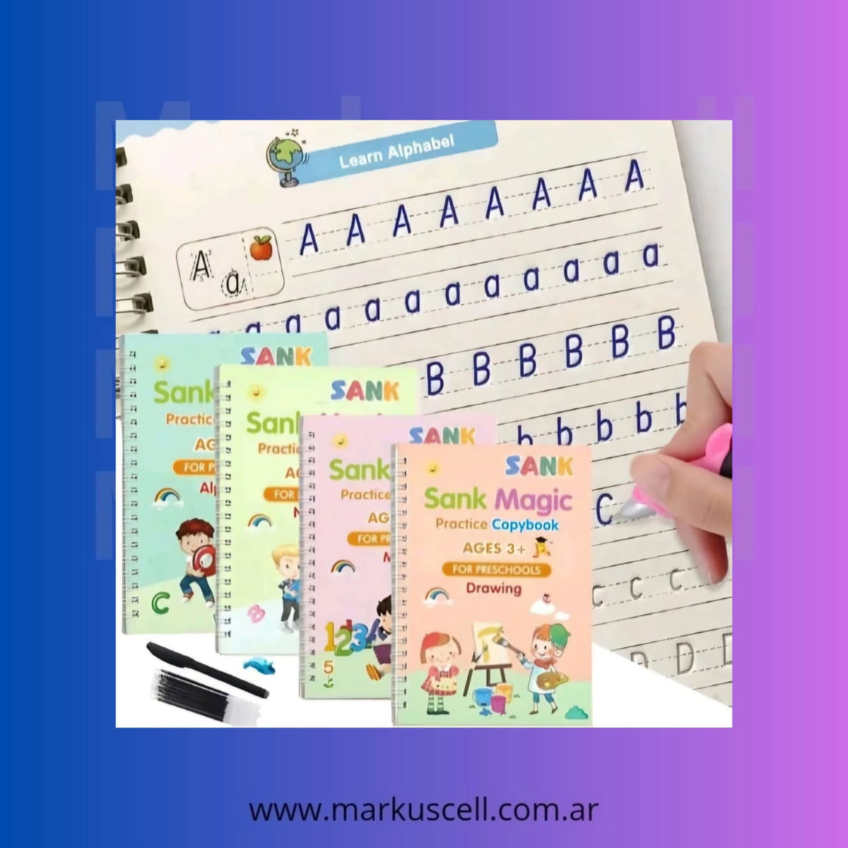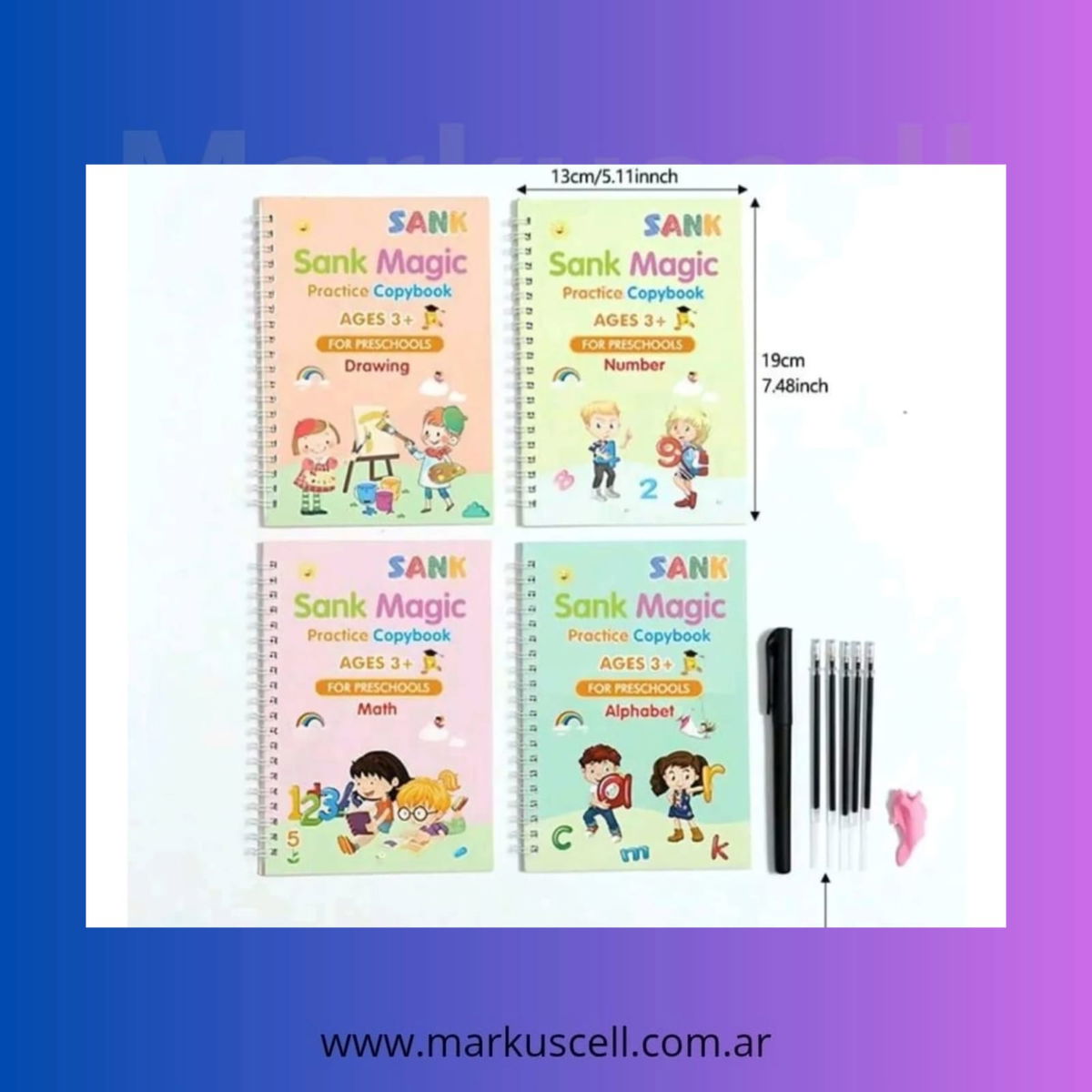 Set de 4 Cuadernos Mágicos para Practicar Escritura – En Inglés – Incluye Lapicera y Repuestos
